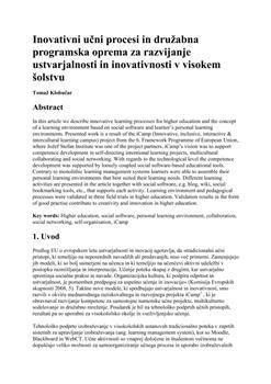 Klobučar, Tomaž. "Inovativni učni procesi in družabna programska oprema za razvijanje ustvarjalnosti in inovativnosti v visokem šolstvu."