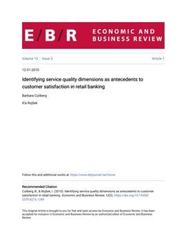 Culiberg, Barbara, Rojšek, Iča. "Identifying service quality dimensions as antecedents to customer satisfaction in retail banking."