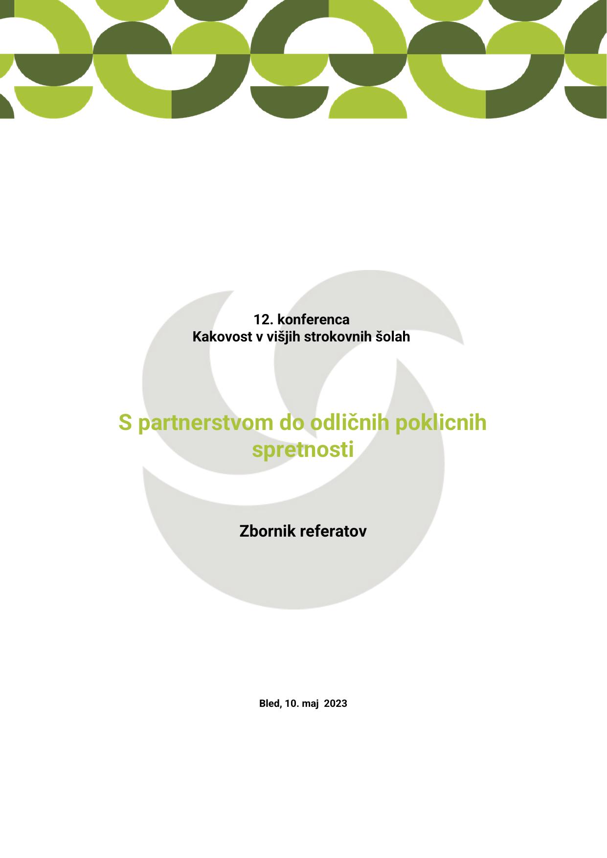 S partnerstvom do odličnih poklicnih spretnosti : Kakovost v višjih strokovnih šolah : 12. konferenca : zbornik referatov : Bled, 10. maj 2023