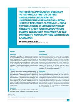 Horvat Rauter, Barbara. "Psihološke značilnosti bolnikov po amputaciji prstov ob prvi ambulantni obravnavi na Univerzitetnem rehabilitacijskem inštitutu Republike Slovenije - Soča."