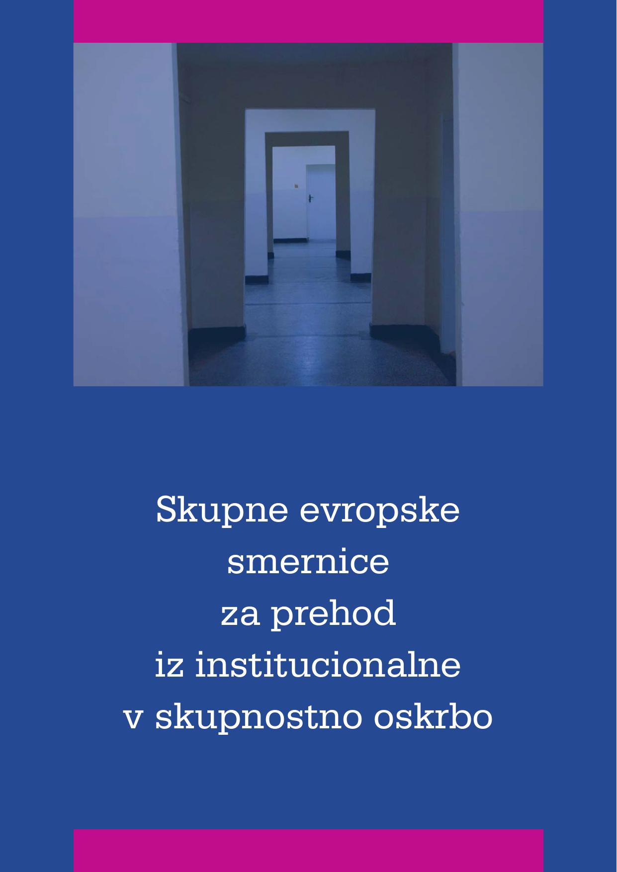 Skupne evropske smernice za prehod iz institucionalne v skupnostno oskrbo : smernice za uveljavitev in podporo trajnostnemu prehodu iz institucionalne v družinsko in skupnostno oskrbo otrok, ljudi z oviranostjo, ljudi s težavami z duševnim zdravjem in starih ljudi v Evropi