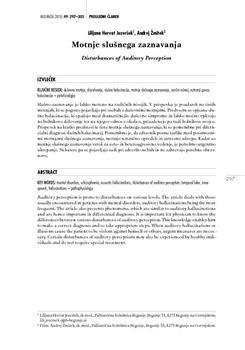 Horvat Jezeršek, Lilijana, Žmitek, Andrej. "Motnje slušnega zaznavanja."