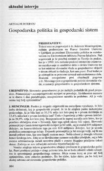 Mencinger, Jože, Škerjanec, Janez. "Gospodarska politika in gospodarski sistem."