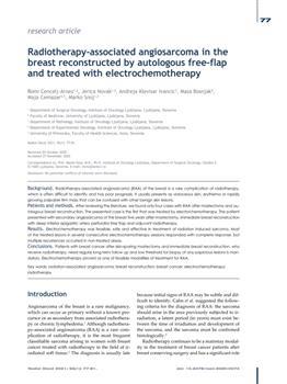 Cencelj-Arnež, Romi, Novak, Jerica, Klevišar Ivančič, Andreja, Bošnjak, Maša, Čemažar, Maja, Snoj, Marko. "Radiotherapy-associated angiosarcoma in the breast reconstructed by autologous free-flap and treated with electrochemotherapy."