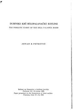 Petrović, Jovan B.. "Dubinski krš Belopalanačke kotline."