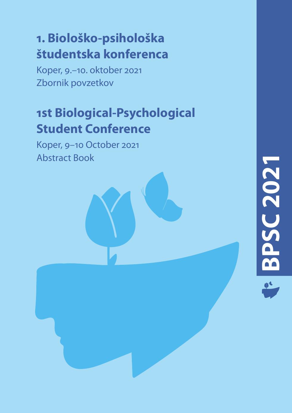 Gerič, Urška, Kuder, Ana, Pajmon Rak, Taja, Privileggio, Luca, Pungerčar, Mojca, Winkler, Leila, Gerič, Nataša (2021). 1. Biološko-psihološka študentska konferenca. URN:NBN:SI:DOC-M28HKQ9M from http://www.dlib.si