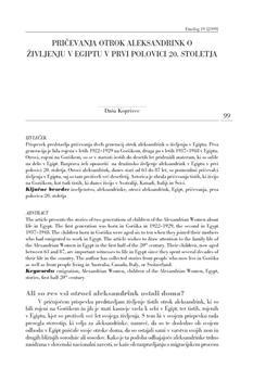 Koprivec, Daša. "Pričevanja otrok aleksandrink o življenju v Egiptu v prvi polovici 20. stoletja."