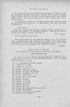 Nahtigal, Rajko. "Popravki k izdaji "Staroruski ep Slovo o polku Igorevě", SAZU, Ljubljana 1954."