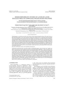 Moyo, Mthabisi Talent George, Adali, Terin, Edebal, Oguz Han, Bayir, Ece, Şendemir, Aylin (2023). Hemocompatibility studies of layer-by-layer polyelectrolyte complexes for bio-based polymers.