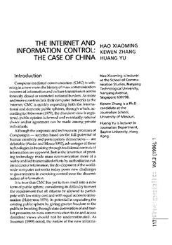 Xiaoming, Hao, Huang, Yu, Kewen, Zhang (1996). The Internet and information control: the case of China.