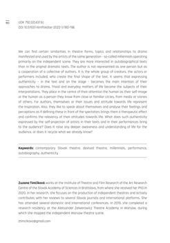Timčiková, Zuzana (2022). Authenticity in authorial works of devised theatre.