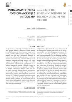Cieślak, Iwona, Szuniewicz, Karol. "Analysis of the investment potential of location using the ahp method."