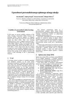 Kožuh, Ines, Sarjaš, Andrej, Jeremić, Zoran, Debevc, Matjaž (2012). Uporabnost personaliziranega spletnega učnega okolja.