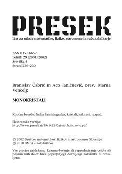 Čabrić, Branislav, Janićijević, Aco, Vencelj, Marija (2002). Monokristali.