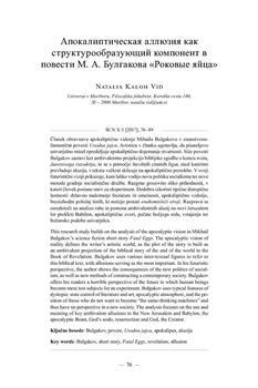 Kaloh Vid, Natalia. "Apokaliptičeskaja alljuzija kak strukturoobrazujuščij komponent v povesti M. A. Bulgakova "Rokovye jajca"."