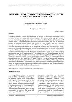 Jakše, Boštjan, Jakše, Barbara. "Potential benefits of consuming omega-3 fatty acids for artistic gymnasts."