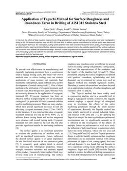 Çiçek, Adem, Kivak, Turgay, Samtaş, Gürcan. "Application of Taguchi method for surface roughness and roundness error in drilling of AISI 316 stainless steel."