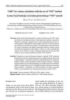 Vulić, Milivoj, Durgutović, Anes. ""UDF" for volume calculation with the use of "NTF" method."