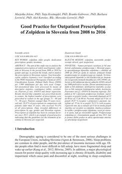 Jelenc, Marjetka, Kostnapfel, Tatja, Gabrovec, Branko, Lovrečič, Barbara, Korošec, Aleš, Lovrečič, Mercedes (2017). Good practice for outpatient prescription of zolpidem in Slovenia from 2008 to 2016.
