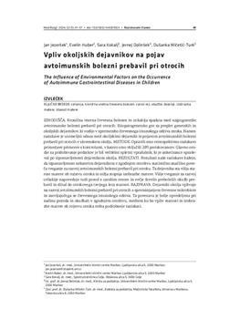 Jezeršek, Jan, Huber, Evelin, Kokalj, Sara, Dolinšek, Jernej, Mičetić-Turk, Dušanka. "Vpliv okoljskih dejavnikov na pojav avtoimunskih bolezni prebavil pri otrocih."