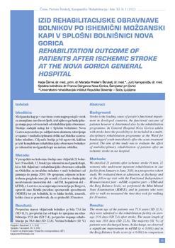Izhodišča: Možganska kap je v razvitem svetu najpogostejši vzrok za zmanjšane zmožnosti ljudi, izid njihovega funkcijskega stanja pa je odvisen tudi od rehabilitacijske obravnave. Slednjo zadnjih nekaj let v Splošni bolnišnici Nova Gorica neposredno po zaključenem akutnem zdravljenju izvajamo v multidisciplinarni obliki na Oddelku za invalidno mladino. Cilj naše študije je bil ugotoviti, kakšen je izid kompleksne rehabilitacijske obravnave bolnikov po ishemični možganski kapi na našem oddelku. Metode: V prospektivno kohortno študijo smo vključili 21 bolnikov (9 moških, 12 žensk) po ishemični možganski kapi, ki so bili vključeni v rehabilitacijsko obravnavo odraslih na Oddelku za invalidno mladino v naši bolnišnici od januarja do junija 2010. Ob sprejemu, odpustu in kontrolnem pregledu smo jih ocenili z Lestvico funkcijske neodvisnosti (motorični del - mFIM, kognitivni del - kFIM), z Lestvico za ocenjevanje ravnotežja po Bergovi, opravili smo Kratki preizkus spoznavnih sposobnosti (MMSE) ter pri bolnikih, ki so lahko hodili, izmerili, koliko časa so potrebovali, da so prehodili 10 metrov. Rezultati: Povprečna starost vključenih bolnikov je bila 73,6 let (SD 11,3), povprečni čas od kapi do sprejema na rehabilitacijo 15,9 dni (SD 7,4), povprečno trajanje rehabilitacije pa 38,6 dni (SD 22,8). Večina bolnikov (81 %) je bila odpuščenih v domače okolje. Ob odpustu smo v primerjavi s stanjem pred sprejemom ugotovili pomembno izboljšanje ocene bolnikov po mFIM (p < 0,001) ter ocene ravnotežja z lestvico po Bergovi (p < 0,001). Ob kontrolnem pregledu, ki je bil povprečno 121,1 dni (SD 45,9) po odpustu, smo v primerjavi z oceno ob odpustu ugotovili pomembno izboljšanje ocene bolnikov po mFIM (p = 0,001) in ocene ravnotežja z lestvico po Bergovi (p = 0,007). Ocene bolnikov po kFIM, MMSE in hitrost hoje se med sprejemom, odpustom in kontrolnim pregledom niso pomembno spremenile. Zaključki: Rehabilitacijska obravnava bolnikov po ishemični možganski kapi je bila učinkovita na motoričnem funkcijskem področju in pri izboljšanju ravnotežja, pri hitrosti hoje bolnikov ter na kognitivnem področju pa izboljšanja nismo opazili.
