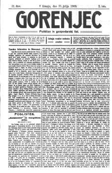 Gorenjec: političen in gospodarski list (31.07.1909), letnik 10, številka 31. URN:NBN:SI:DOC-ZJZM87WN from http://www.dlib.si