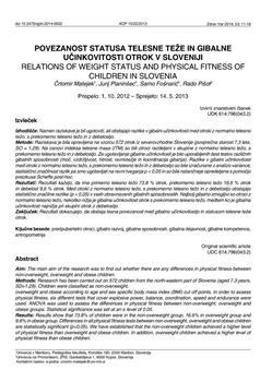 Matejek, Črtomir, Planinšec, Jurij, Fošnarič, Samo, Pišot, Rado. "Povezanost statusa telesne teže in gibalne učinkovitosti otrok v Sloveniji."