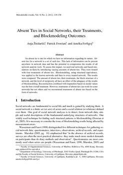 Žnidaršič, Anja, Doreian, Patrick, Ferligoj, Anuška (2012). Absent ties in social networks, their treatments, and blockmodeling outcomes.