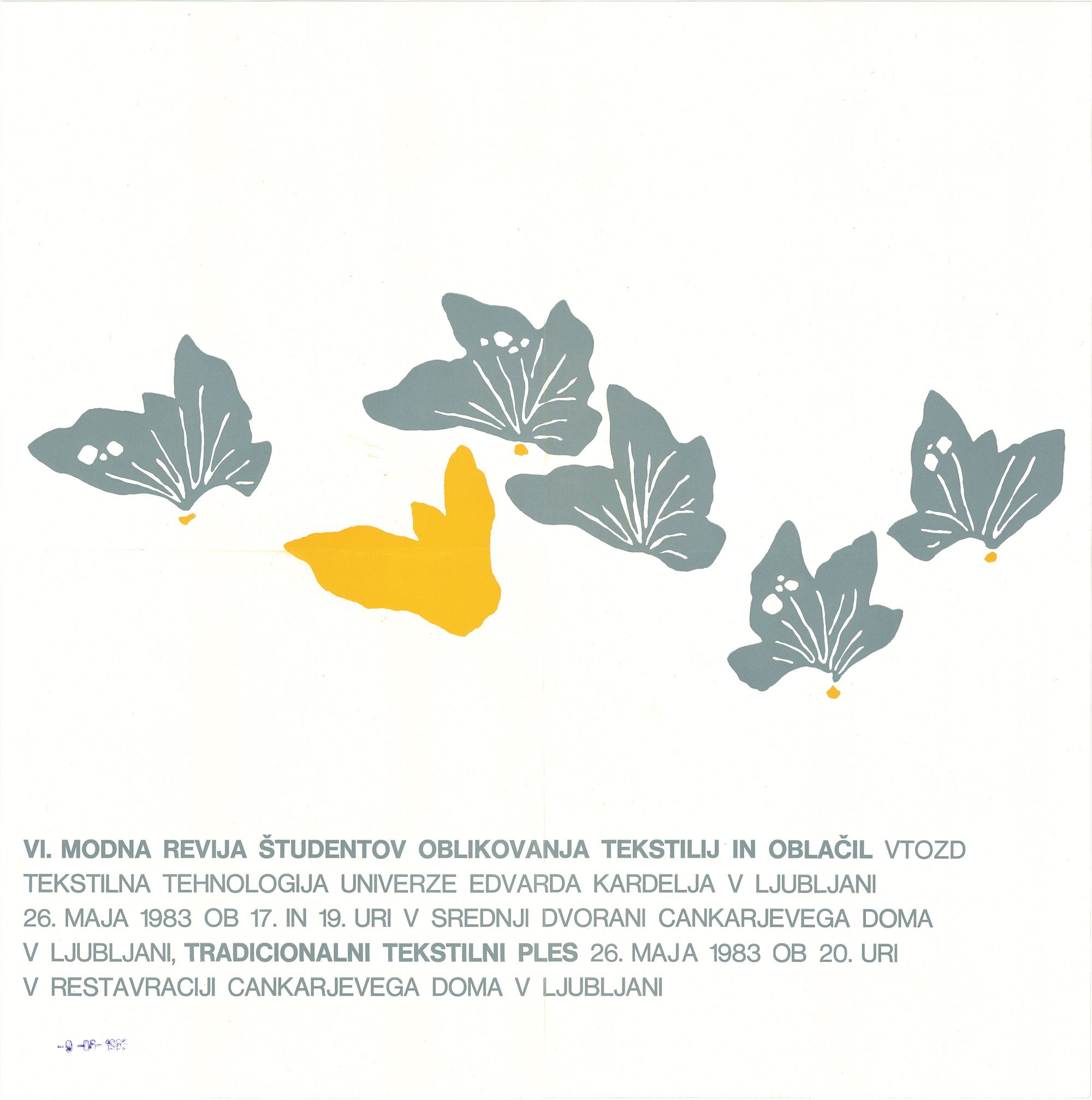 VI. modna revija študentov oblikovanja tekstilij in oblačil ... tradicionalni tekstilni ples 26. maja 198. 1983.