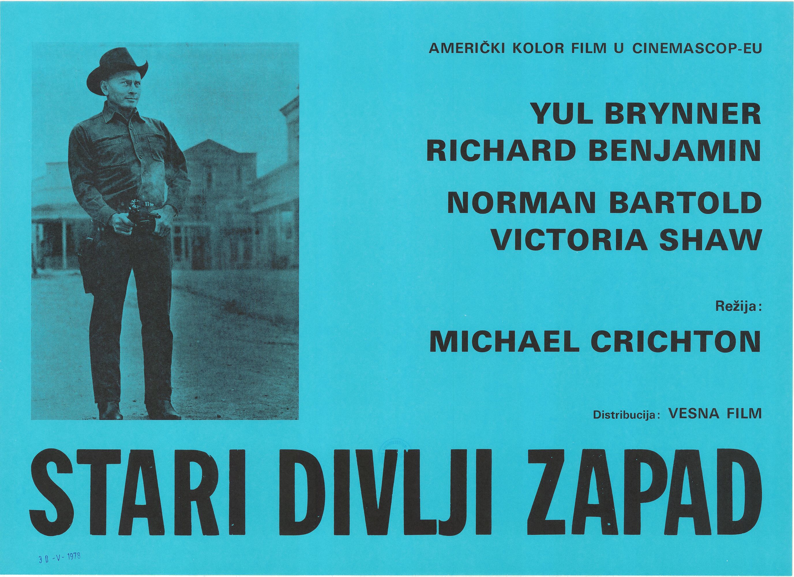 Stari divlji zapad : američki kolor film u cinemascop-eu : režija Michael Crichton : Yul Brynner, Richard Benjamin, Norman Bartold, Victoria Shaw
