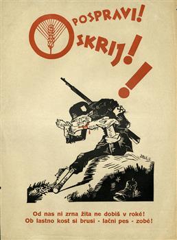 Pospravi! Skrij! : Ob lastno kost si brusi - lačni pes - zobé! : Od nas ni zrna žita ne dobiš v roké!