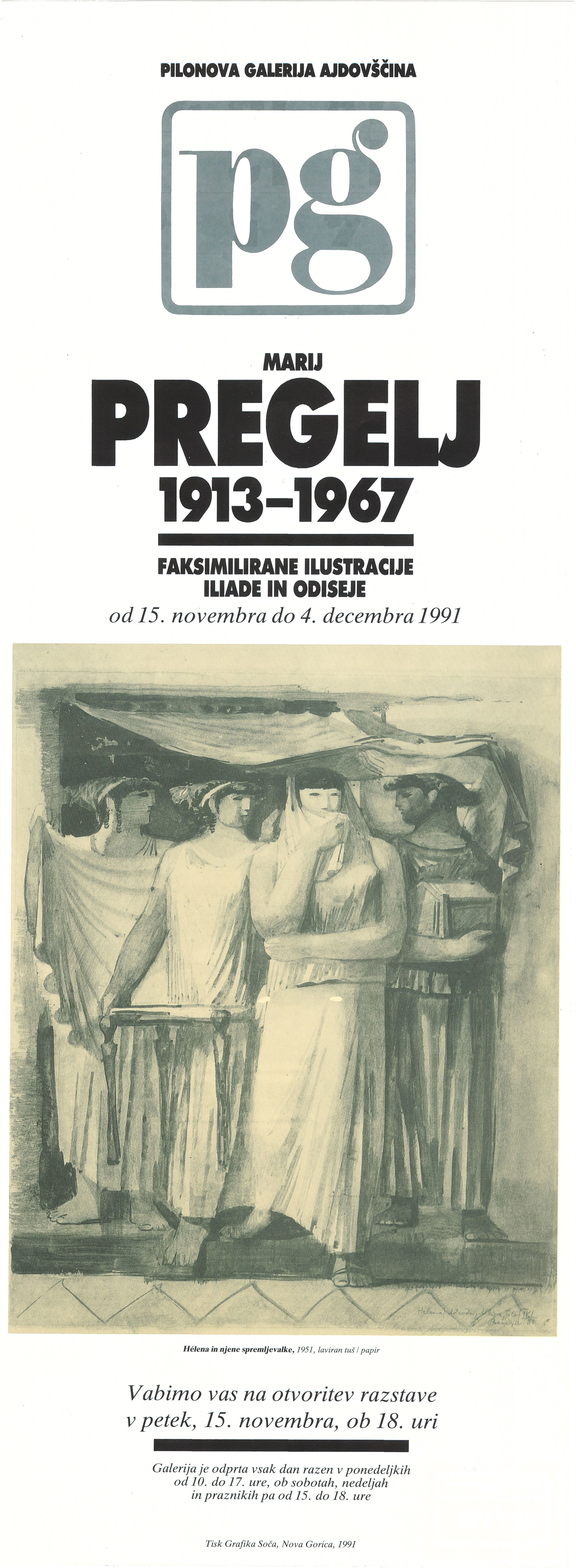 Marij Pregelj 1913 - 1967 : faksimilirane ilustracije Iliade in Odiseje : Pilonova galerija Ajdovščina, od 15. novembra do 4. decembra 1991