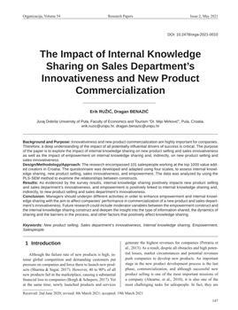 Ružić, Erik, Benazić, Dragan. "The impact of internal knowledge sharing on sales department’s innovativeness and new product commercialization."