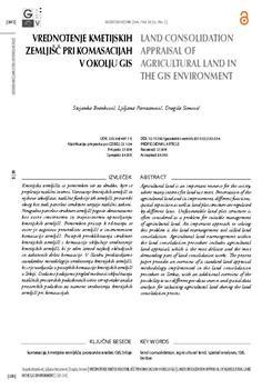Branković, Stojanka, Parezanović, Ljiljana, Simović, Dragiša (2015). Land consolidation appraisal of agricultural land in the GIS environment.