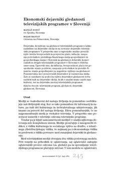 Dodič, Matjaž, Nastav, Bojan. "Ekonomski dejavniki gledanosti televizijskih programov v Sloveniji."