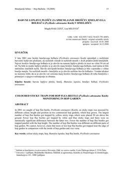 Rak Cizej, Magda, Milevoj, Lea. "Barvne lepljive plošče za spremljanje hroščev hmeljevega bolhača (Psylliodes attenuatus Koch) v hmeljišču."