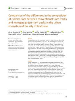 Rendeková, Alena, Mičieta, Karol, Hrabovský, Michal, Zahradníková, Eva, Michalová, Martina, Miškovic, Ján, Eliášová, Mariana, Ballová, Dominika. "Comparison of the differences in the composition of ruderal flora between conventional tram tracks and managed green tram tracks in the urban ecosystem of the city of Bratislava."