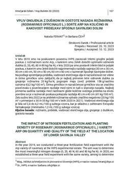 Ferant, Nataša, Čeh, Barbara (2023). Vpliv gnojenja z dušikom in gostote nasada rožmarina (Rosmarinus officinalis L.) sorte Arp na količino in kakovost pridelka v Spodnji Savinjski dolini.