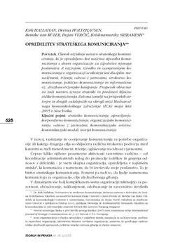 Hallahan, Kirk, Holtzhausen, Derina, Ruler, Betteke van, Sriramesh, Krishnamurthy, Verčič, Dejan. "Opredelitev strateškega komuniciranja."