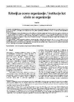 Urh, Irma. "Kriteriji za oceno organizacije / institucije kot učeče se organizacije."