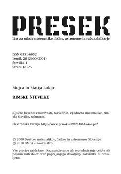 Lokar, Mojca, Lokar, Matija. "Rimske številke."