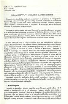 Cossutta, Rada (1998). Romanski vplivi v govorih slovenske Istre.