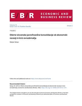 Senjur, Marjan. "Dileme slovenske javnofinančne konsolidacije ob ekonomski recesiji in krizi evroobmočja."