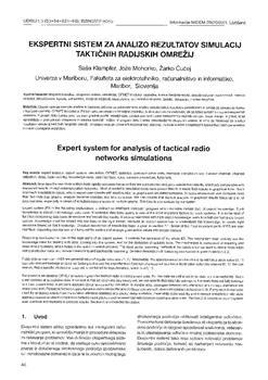 Klampfer, Saša, Mohorko, Jože, Čučej, Žarko. "Ekspertni sistem za analizo rezultatov simulacij taktičnih radijskih omrežij."