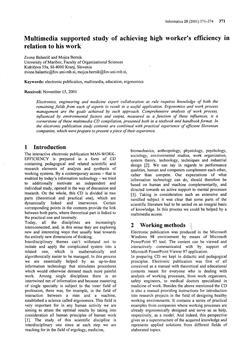 Balantič, Zvone, Bernik, Mojca. "Multimedia supported study of achieving high worker's efficiency in relation to his work."