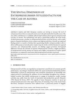 Reiner, Christian, Kronenberg, Christopher, Gassler, Helmut. "The spatial dimension of entrepreneurship."