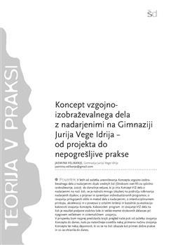 Velikanje, Jasmina. "Koncept vzgojno-izobraževalnega dela z nadarjenimi na Gimnaziji Jurija Vege Idrija."