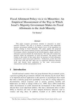 Shahor, Tal (2010). Fiscal allotment policy vis a vis minorities.