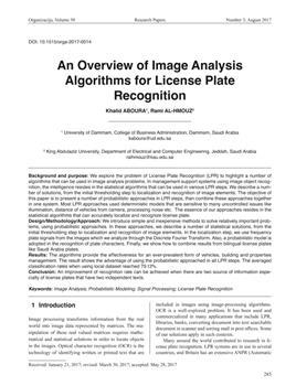 Aboura, Khalid, Al-Hmouz, Rami (2017). An overview of image analysis algorithms for license plate recognition.