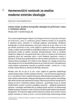 Kraner, Kaja (2018). Hermenevtični nastavek za analizo moderne estetske ideologije.